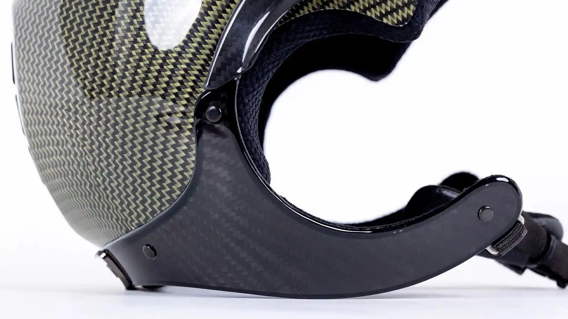 Modèles XP : Sa jugulaire en carbone rigide est unique. Créée dans nos ateliers, sa structure rigide en carbone améliore nettement la stabilité du casque et nous a permis de nous affranchir des sangles latérales qui deviennent inutiles. Le champ de vision est alors complètement dégagé et sa forme apporte une protection additionnelle. La jugulaire s’attache et se détache avec une boucle magnétique de chez Fidlock®. Il est important d’avoir la jugulaire toujours bien ajustée et de vérifier régulièrement les réglages.